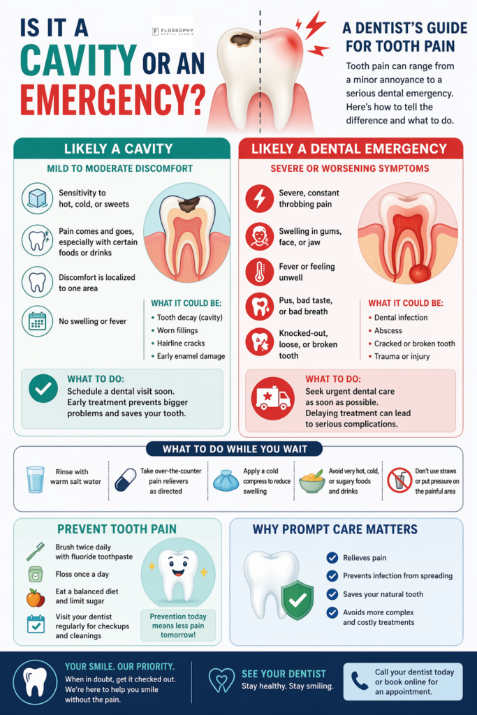 At Flossophy Dental Studio, Dr Matthew Le helps patients understand the difference between minor dental issues and true emergencies. Knowing when to act can save you time, money, and unnecessary discomfort.